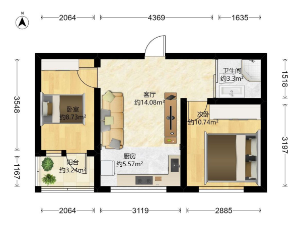 房屋戶型: 2 室2廳 1 廚1衛(wèi)