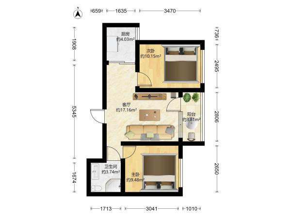 房屋戶型: 2 室1廳 -- 廚1衛(wèi)