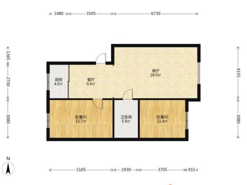 房屋戶型: 2 室2廳 1 廚1衛(wèi)