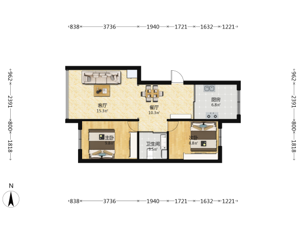 房屋戶型: 2 室2廳 1 廚1衛(wèi)