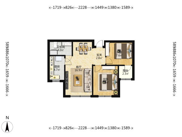 房屋戶型: 2 室1廳 1 廚1衛(wèi)