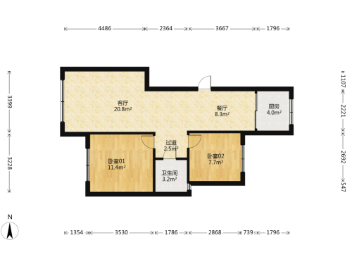 房屋戶型: 2 室2廳 1 廚1衛(wèi)
