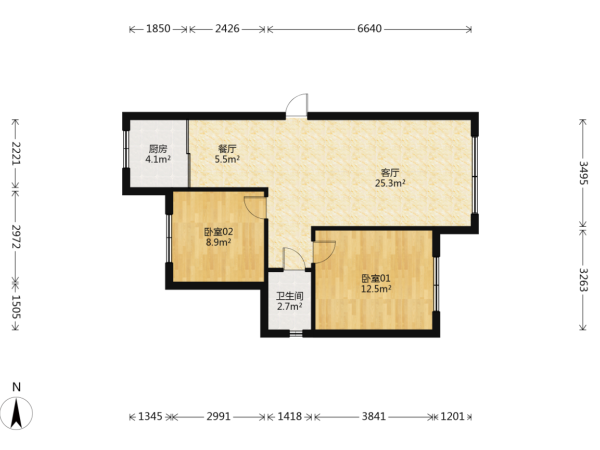 房屋戶型: 2 室2廳 1 廚1衛(wèi)