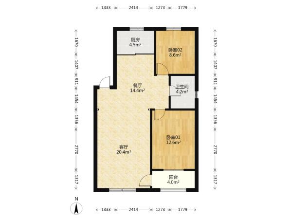 房屋戶型: 2 室2廳 1 廚1衛(wèi)