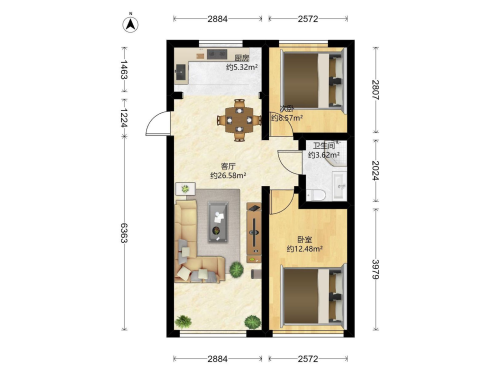 房屋戶型: 2 室1廳 1 廚1衛(wèi)