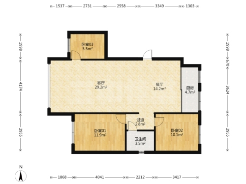 房屋戶型: 3 室1廳 1 廚1衛(wèi)