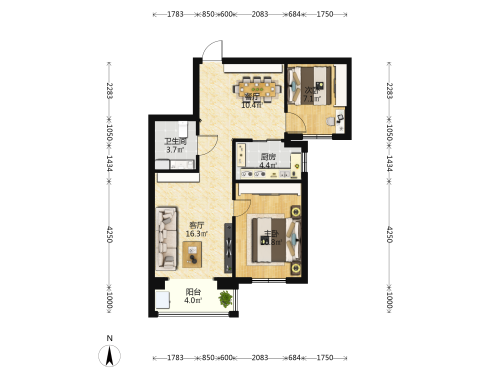 房屋戶型: 2 室2廳 1 廚1衛(wèi)