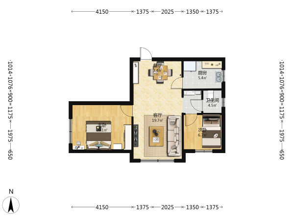 房屋戶型: 2 室2廳 1 廚1衛(wèi)