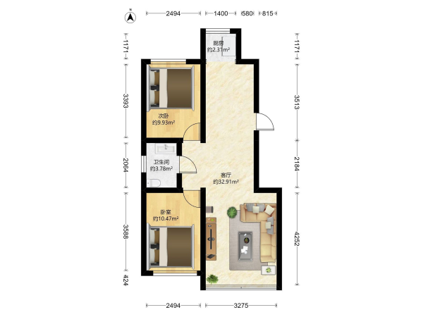 房屋戶型: 2 室2廳 1 廚1衛(wèi)